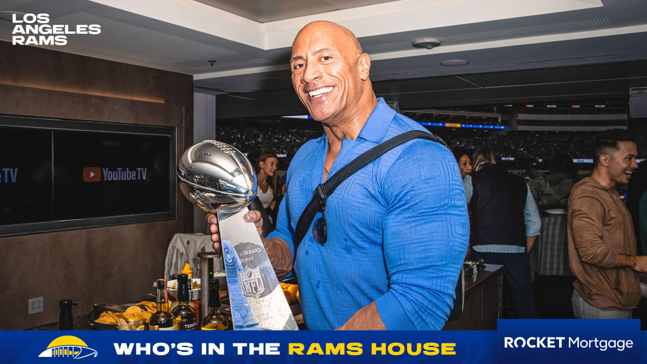 Check out photos of Dwayne "The Rock" Johnson, Brody Jenner, Josh Holloway and more as they visited SoFi Stadium for Los Angeles Rams vs. Seattle Seah