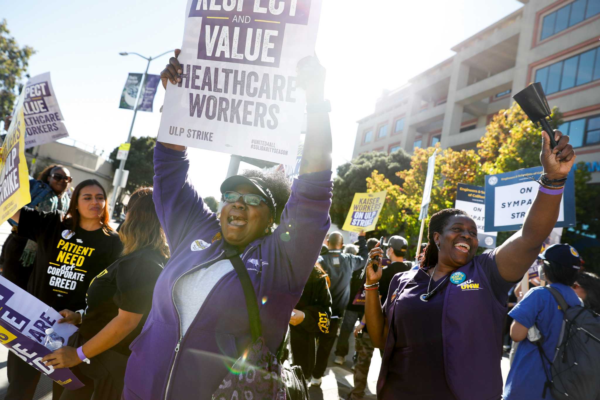 Tens of thousands of Kaiser Permanente health care workers in the Bay Area and across the country began a planned three-day strike Wednesday.